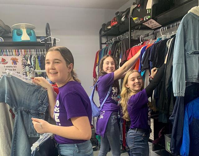 Volunteers hang up clothes in the Mark 12 Ministries Thrift Store.