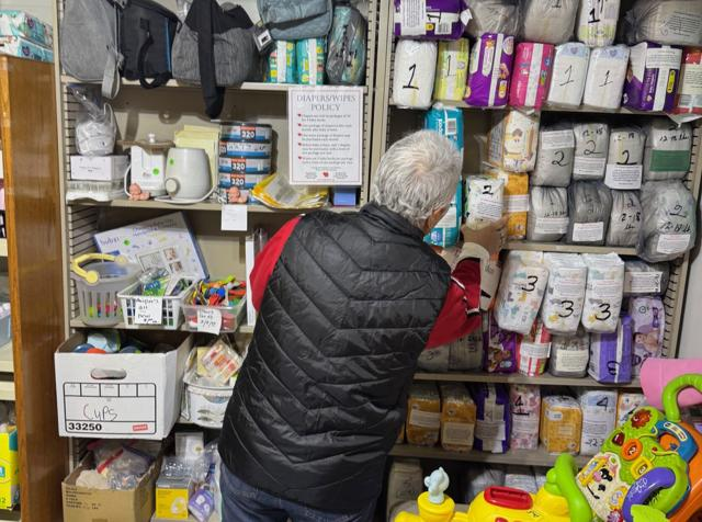Two Hearts Pregnancy Center takes care of needs for mothers and their children from three states – Kentucky, Ohio and West Virginia. Executive Director Sandy Bellomy is doing organizing the basement pantry.
